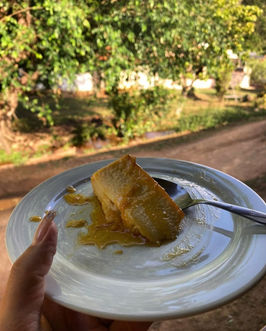 No almoço, a cozinha se enche de histórias: comida mineira feita com amor, tempero de verdade e aquele toque de carinho que só quem vive aqui entende. E, para adoçar, o pudim e o doce de leite fecham a refeição como um abraço final.